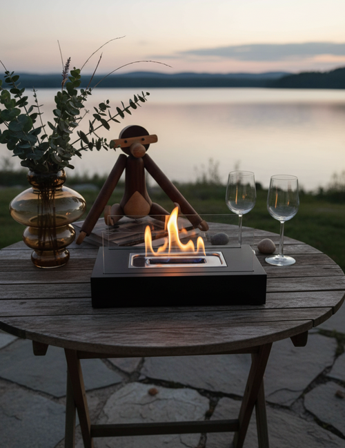 Moderne fritstående biopejs i sort stål - Lige nu: 47% rabat + fri fragt